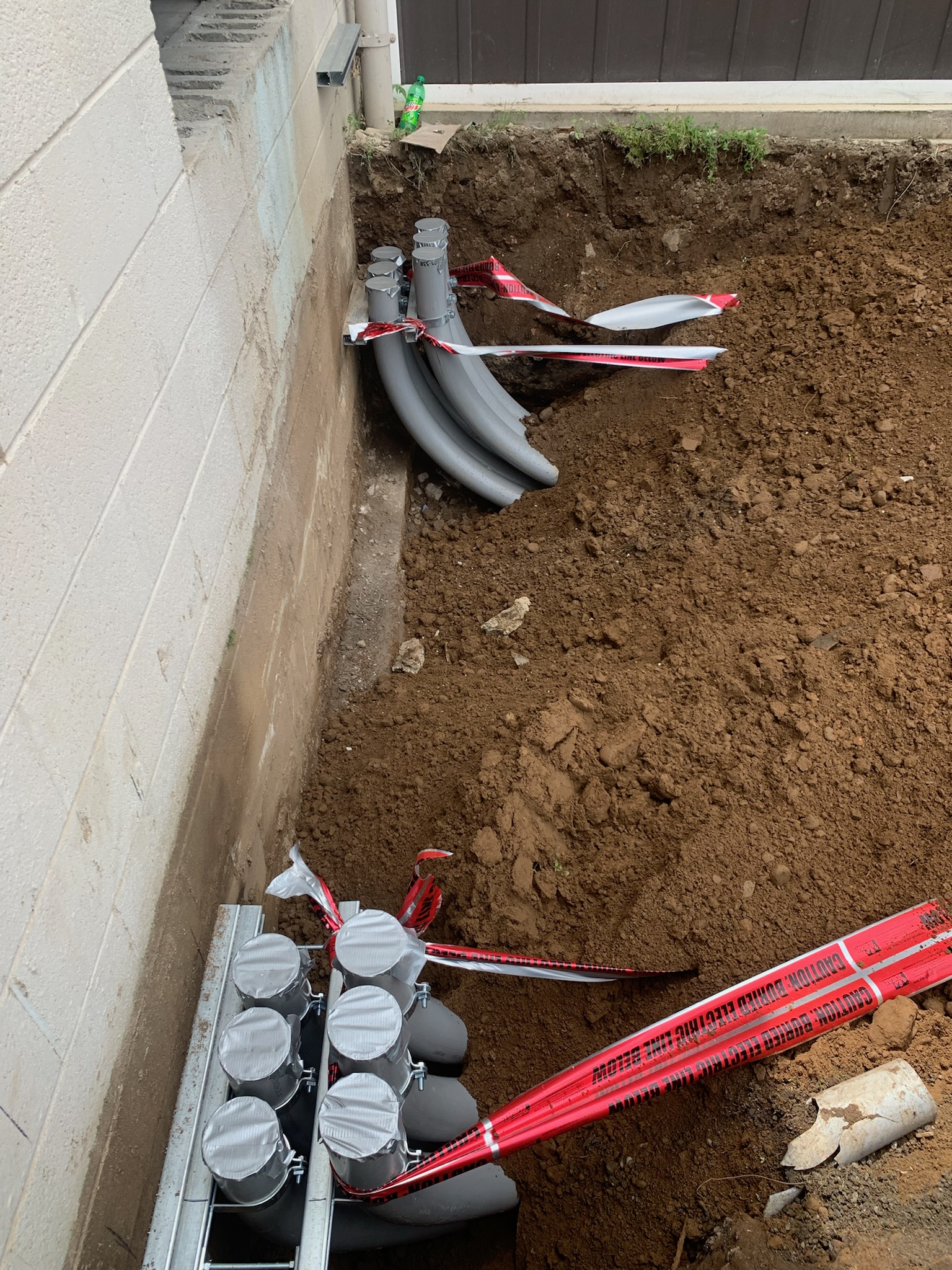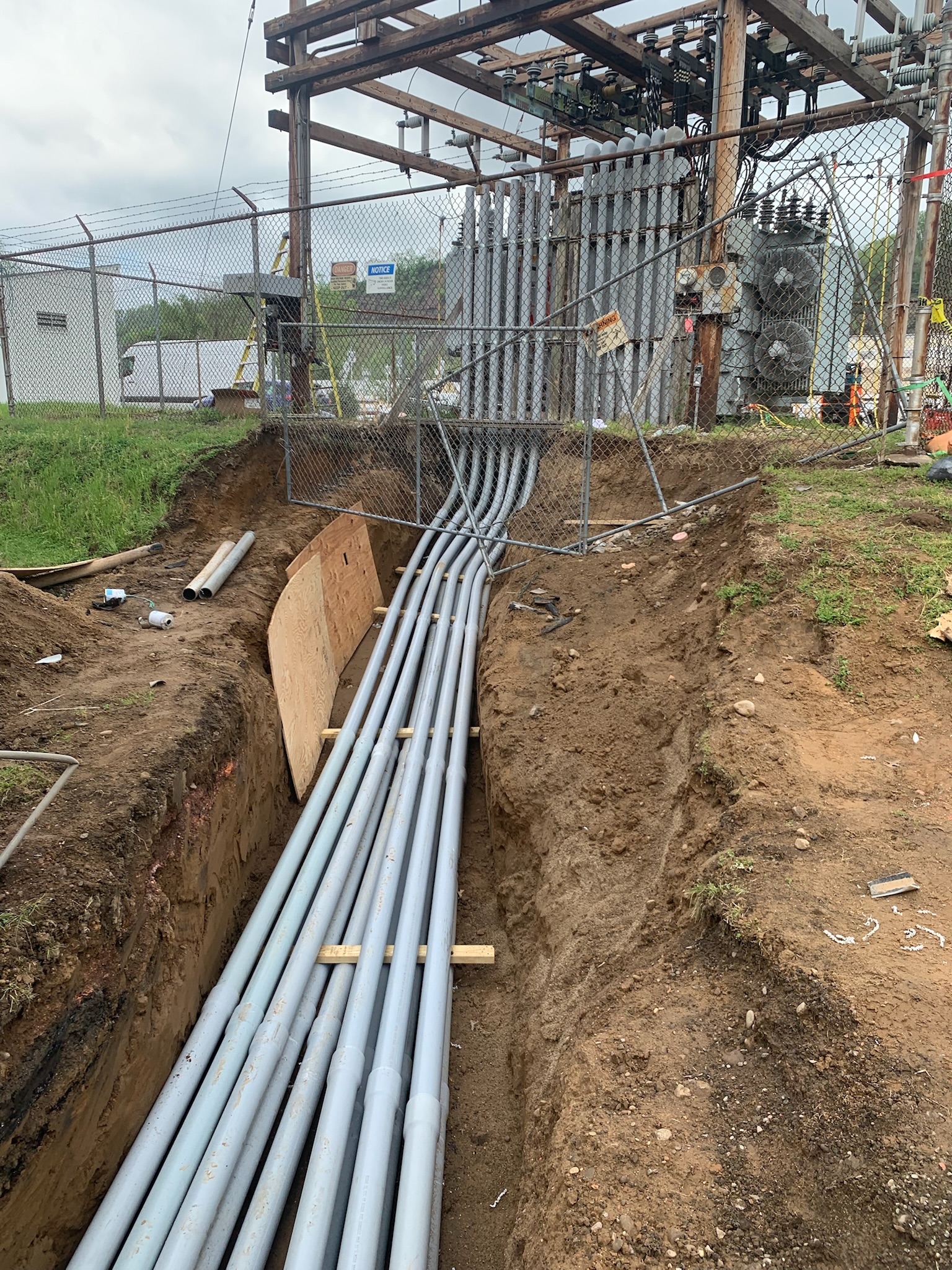 We were called to Chelsea Building Products after an underground conductor’s failure caused a fire to erupt from both ends of a conduit bank. The incident damaged one of the 2500A service switchboards, along with the conductors for another 2500A service buried directly above it—both fed from a single utility transformer in the company’s substation. Working closely with the customer, DLCo, and CBP’s excavation contractor, we cleared the area and removed damaged conductors from fifteen 4″ conduits.