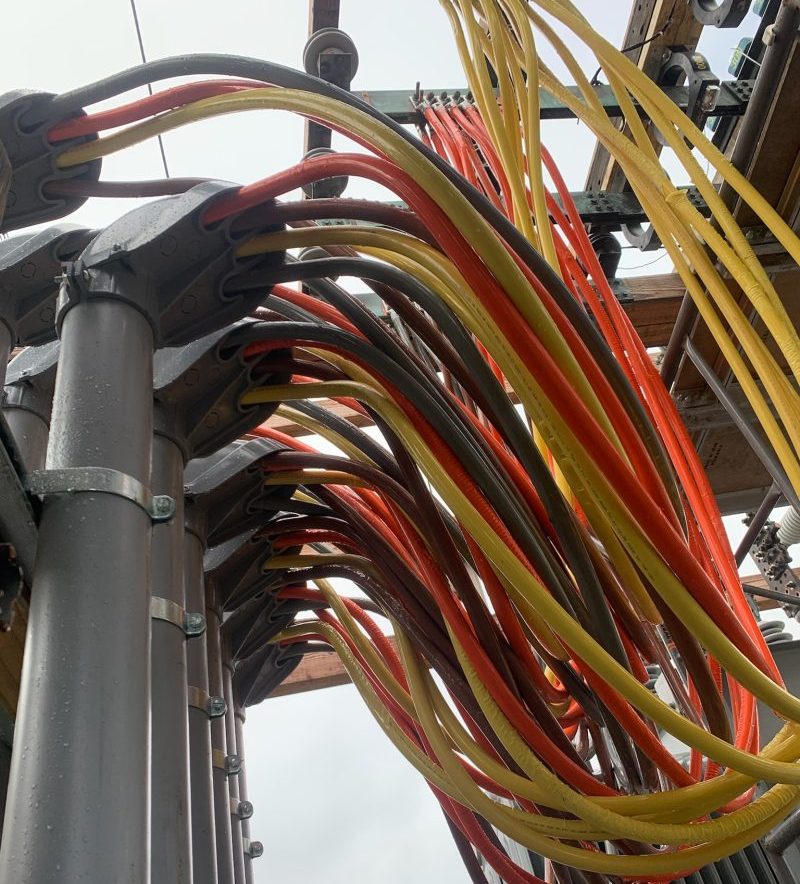 A crew of 6–9 worked 12–15 hours a day for seven straight days to restore service.  The team installed approximately 1,200 feet of 4″ PVC conduit and pulled over a mile (5,760′) of 600MCM wire, along with several other sizes. More than 220 large terminations were completed and torqued, and multiple inspections were passed.  All of this was done efficiently while the surrounding area was without power for 3 days and recovering from major storm damage.